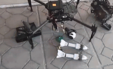 在无人机上拿羽毛球和一个常见的榴弹,组合一下,就能制成一枚飞行炸弹,威力还很大。
